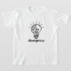 A white graphic tee designed to celebrate unique minds. The print features a symbolic lightbulb, with one half as a brain and the other as a filament, representing bright ideas and divergent thinking. The word "divergenius," a blend of "divergent" and "genius," is displayed underneath.