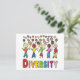 Diversity Design bietet eine Vielzahl von Menschen und das Wort Diversity darunter. Es ist ein Versuch, eine einigende Grafik zu finden, die die Menschen verbindet, anstatt sie zu teilen. Wir sind alle menschlich. Lasst uns von dort aus anfangen, alle mit Respekt und Freundlichkeit Leckerei geben, unser Diversity feiern und nach Gleichheit streben.