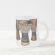 Diese Tasse hat 3 djembe Trommeln auf einer Seite und einem Trommelentwurf mit Benennung auf der anderen Seite. Die Benennung ist der alte stehende Witz innerhalb der Trommel-/Tanzkreise "des Bergwerkes ist größer".