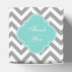 Dk Grau Weiß LG Zickzack Türkis Name Monogramm Geschenkschachtel