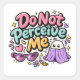 Minimal humorous design with the phrase “Do Not Perceive Me,” perfect for introverts and socially anxious personalities. A popular internet meme phrase that resonates with quiet individuals who value personal space. Ideal for stickers, phone cases, laptops, journals, and relaxed clothing.
