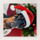 Niedlich Doberman mit einer Weihnachtsmannmütze.