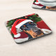 Niedlich Doberman mit einer Weihnachtsmannmütze.