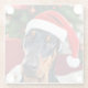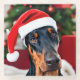 Niedlich Doberman mit einer Weihnachtsmannmütze.