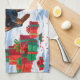 Doberman läuft im Schnee mit Weihnachtshut Geschirrtuch