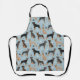 Niedliche Doberman Pinscher Hunde mit ausgeschnittenen und unroppierten Ohren sitzen und stehen gestreute Hundeknochen und Pfotendrucken.