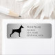 Doberman Hund Silhouette Profil in schwarz. Set auf einem zweifarbigen silbergrauen Hintergrund. Personalisieren Sie Ihren Namen und Ihre Adresse in schwarzem Schriftart.