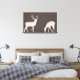 Eine cremefarbene Dose und buck Silhouette jeweils auf ihrer eigenen Leinwand auf einem Espressobraunen Hintergrund.