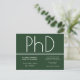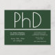 Une invitation par carte postale pour une soirée de doctorat. Cette invitation minimaliste est verte et blanche. Tous les mots peuvent être customisés.