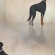Transform your space with a sense of quiet wonder. This elegant wallpaper features a painterly scene of a Doberman and a delicate fawn, meeting across a soft, mist-filled landscape. Muted earth tones, gentle reflections, and a textured, canvas-like finish create a calm and atmospheric pattern that feels both modern and timeless.