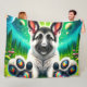 Diese Fleecedecke hat einen niedlichen Hund darauf.