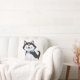 Hast du eine Liebe für Hunde? Dieses Kissen muss dann in Ihrem Raum sein. Ein niedlicher Schwarz-Weiß-Hund mit blauen Augen lässt Sie sagen: "Ach". Er sieht auch in seiner blau-weiß gestreiften Krawatte aus. Die Rückseite ist in einer blauen, soliden Farbe.