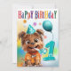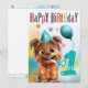 Cute Terrier in Party Hat with Horn, Celebrates a Birthday.