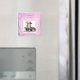 Ein gemütlicher Hundemagnet in rosa Farben.