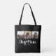 Celebrate your bond with your furry best friend using this adorable and elegant script font 3 photo Dog Mom Tote featuring 3 loving photo moments. Perfect for any proud dog mom who adores her pup and wants a stylish reminder of unconditional love. Swap out images with your favorite pictures of you and your dog.