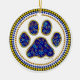 Blauer Pfotenprint gefüllt mit farbigen Sternen auf einem Keramik-Ornament. Design von Glenda S. Harlan.