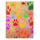 Niedliche Karikaturenpaw-Druckmuster in vielen Farben. Maßgeschneiderte Notebooks mit Vintagem Design. Geschenkidee für Hundefreunde.