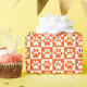 Hundepete druckt in orangefarbenem und weißem Muster.