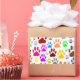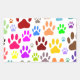 Überall drucken Bilder von Hundepfoten. Farbvolles Design im Cartoon.