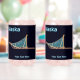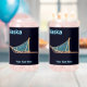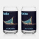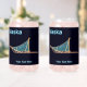 Lass ihnen, was du im Winter für Spaß machst. Ein Hund schlug überlagert auf einem sternigen Hintergrund. Text liest, "Alaska" erscheint in leuchtendem Blau und Weiß. Sie können Ihren eigenen zusätzlichen Text sowohl auf dem Schlitten als auch unten hinzufügen.