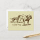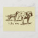 Der englische Setter schnüffelt einen Bulldoggen Hintern mit dem Slogan "I Like You". Witzige Hundeillustrierung.