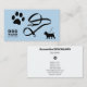 Eine blaue Visitenkarte mit Abbildung einer Pfote, einer Leine und einer Silhouette eines Hundes für Hundeschwalker oder andere Begleithelferdienste wie Züchtern, Tierverhaltenswissenschaftler usw. Es ist vollständig anpassbar und Hoffnung wird Ihnen in Ihrem Unternehmen helfen.