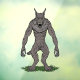 Diese kryptische/Horror-Abbildung von Richard H. Fay zeigt einen schrecklich wolfischen Dogman (oder, wenn Sie es bevorzugen, Werwolf) stehend aufrecht auf seinen Hinterbeinen.