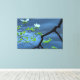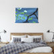 Ein nah aufgenommenes Foto erfasst zarte, weiße Hundsholzblüten und lebendige grüne Blätter auf schlanken Ästen. Der Hintergrund ist verschwommen, fließendes Wasser in Blau- und Grautönen und erzeugt einen weichen, traumhaften Effekt. Ein dunkelbrauner Zweig erstreckt sich über die untere rechte Seite des Rahmens und fügt Tiefe und Kontrast hinzu. Die Stimmung ist insgesamt ruhig und friedlich, was die Schönheit der Natur im Frühling unterstreicht.