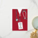 Der Arzt dankt Ihnen für die Karten für den Abschluss der medizinischen Fakultät und für die Dankeschön des Arztes mit roten Klinikschrubben und Stethoskop.