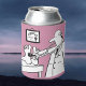 Geschenk für einen Arzt. Kann kühler für einen Arzt oder Chirurg. Geschenk für einen Arzt. Ein leichtherziger, lustiger Cartoon, der einem Arzt mit Stethoskop zeigt, der die Füße eines Patienten kontrolliert. Die Farbe ist schwarz und weiß auf einem lila Hintergrund. Der sonnige Arzt auf der Dose kühler für einen Arzt oder medizinisch beruflich. Medizinischer Spaß.