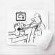 Ein leichtherziger, lustiger Cartoon, der einem Arzt mit Stethoskop zeigt, der die Füße eines Patienten kontrolliert.
