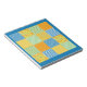 Ein hübsches Notepad oder Jotter, mit einem Imitat-Patchwork-Muster von Daffodil-Drucken, mit Polka Dots und Karo Ginghams in grün, orange, gelb und blau und weiß. Teil der Posh & Painterly 'Daffy-down-Dillies' Kollektion.