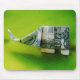 Dollar-Bill Origami Elephant auf grünem Hintergrun Mousepad