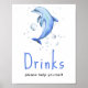 Ein kleines Stück unterwegs mit dieser Babydusche unter dem Thema Meer, mit Baby Delphin in sanft blauen Aquarellen. Wasserfarben-Wasserblasen