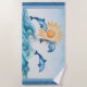 Das bezaubernde Strandtuch bietet drei köstliche Delfine, die unter der Sonne in den Ozeanwellen spielen.