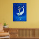 Dolphin Moon Mermaid Fantasy Art Poster. Der Mond wird zu einem weißen Delphin, der dabei hilft, eine Meerjungfrau hochzuheben, um ihren Seestern zu erreichen. Poster von Sue Halstenberg ist ein originales Kunstwerk