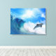 Ein Gemälde eines Delfins, der in den Ozeanwellen zu surfen scheint.