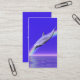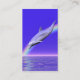 Eine blaue Visitenkarte mit einem Delphin, der nach einem Regenbogen ins Meer taucht.