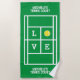 ADOREZ le cadeau de la serviette de plage du court de tennis pour entraîneur ou joueur. Jolie serviette de plage personnalisée pour lui. Faites votre propre serviette de bain amusante pour la piscine, la plage ou les sports. Présence humoristique pour joueur de tennis, coach, entraîneur sportif, enseignant, instructeur, enfants, retraité, amis, famille, fille, garçon, adolescent, collègue à la retraite, mari ou femme, couple mariage, mariée et mariée, etc. Personnalisable en différentes couleurs. Exemple de couleur verte et blanche. modèle de typographie audacieux avec logo de balle de tennis jaune. Ajoutez votre nom, une citation ou un dicton amusant.