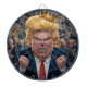 Bild von Donald Trump Dart Board. Ein humorvolles Dartboard mit einer Karikatur Donald Trumps als Ziel, das eine Krone und einen wütenden Ausdruck trägt. Das Board ist von kleineren Bildern von Menschen umgeben. Ein rundes Dartboard mit einer Karikatur Donald Trumps. Das Bild ist eine humorvolle Haltung in der Politik, geeignet für Erwachsene und diejenigen, die ein gutes Lachen.