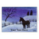 Un tout petit paysage aquarellé d'un âne dans un champ enneigé en silhouette contre et un ciel étoilé.