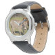 Uhr, Vintage Männeruhr mit schwarzem Lederarmband