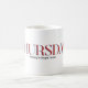 Lassen Sie Ihren Donnerstag mit dieser köstlichen Tasse verwöhnen. Egal ob Sie Ihre morgendliche Braue genießen oder sich am Nachmittag abholen, diese Tasse wird Sie daran erinnern, dass das Wochenende fast hier ist. Ein perfektes Geschenk für Mitarbeiter oder alle, die einen kleinen Spaß mit ihrem Kaffee genießen.
