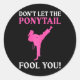 Don't Let The Ponytail Fool You Karate Fighter Mar Runder Aufkleber