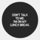 Don't Talk To Me I'm On My Lunch Break, Funny, Jok Runder Aufkleber