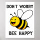 Don't Worry Bee Happy Cute Funny Sitive Quote Poster