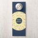 Ein lustiger Türhänger mit einem humorvollen Donut-Design, mit Vanillecreme und Zucker-Strang-Sprinklen-Effekt. Auf der einen Seite ist der Himmel hellblau, und die Nachricht lautet "Bitte klopfen". Die Rückseite ist dunkelblau, mit der Meldung 'Donut Disturb'. Ein ideales neues Accessoire, um jede Tür aufhellen zu können.