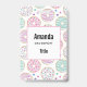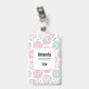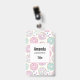 Namensschild mit einem köstlich lustigen Muster. Illustration von pastellrosa und grünen Donuts mit Sprinklen und Vereisung.