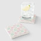 Ein Untersetzer aus Stein mit einem köstlichen, lustigen Muster. Illustration von pastellrosa und grünen Donuts mit Sprinklen und Vereisung.