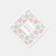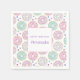Papierservietten mit einem köstlichen Muster. Illustration von pastellrosa und grünen Donuts mit Sprinklen und Vereisung.